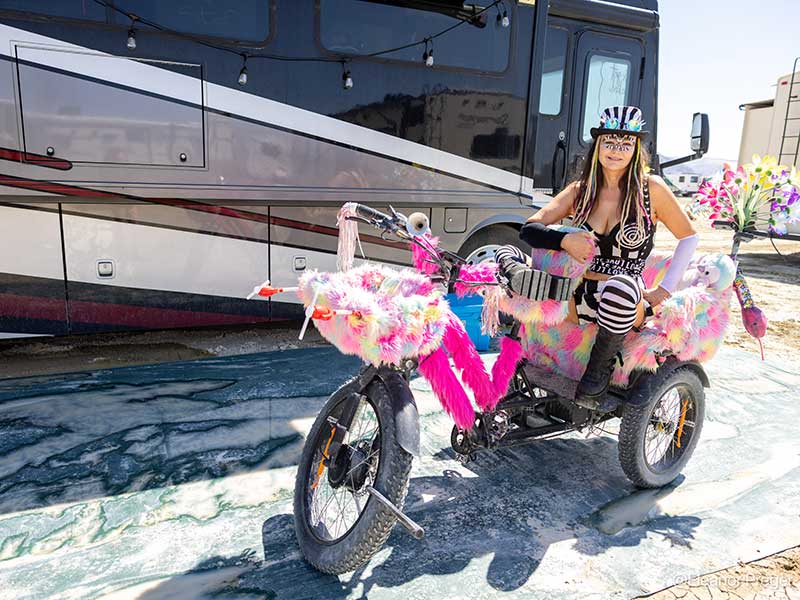 This year, her work captures the essence of “Tomorrow Today” — not only the monumental art and visionary mutant vehicles but also the resilience and intimacy that emerged from the storm. Through Preger’s lens, readers are invited to step into Burning Man’s fleeting city and experience its beauty, its challenges and its magic.